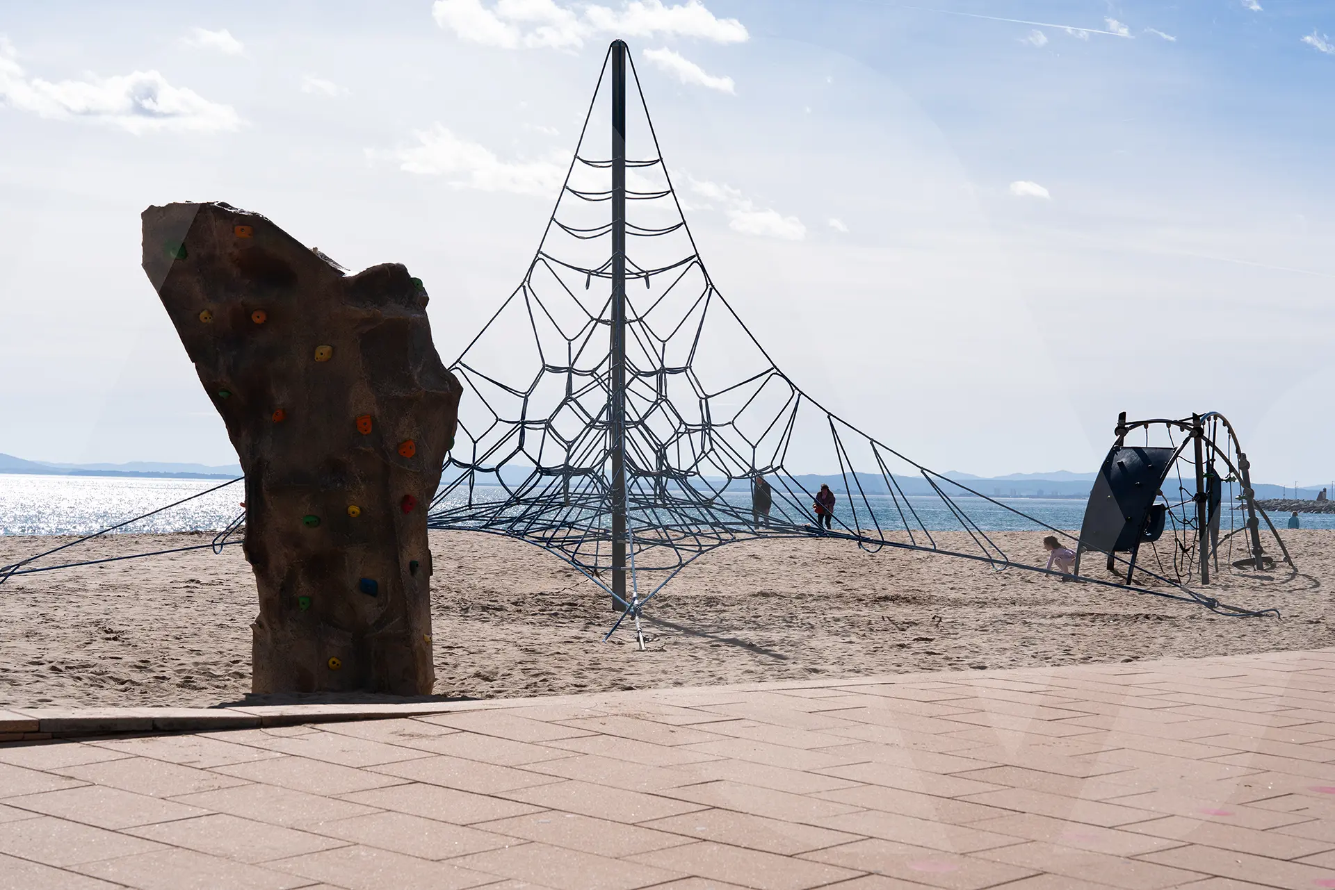 Au cœur de la baie, la plage de Roses s’étire sur plusieurs kilomètres de sable fin, bordée par une agréable promenade maritime. Les eaux y sont généralement calmes et peu profondes, idéales pour la baignade en famille. On y trouve tous les services : douches, accès PMR, aires de jeux, postes de secours, chiringuitos et restaurants. Côté activités, locations de transats, pédalos, paddle ou kayak permettent de profiter pleinement de la Méditerranée. Facile d’accès depuis le centre-ville, la Platja de Roses est un incontournable de la Costa Brava.