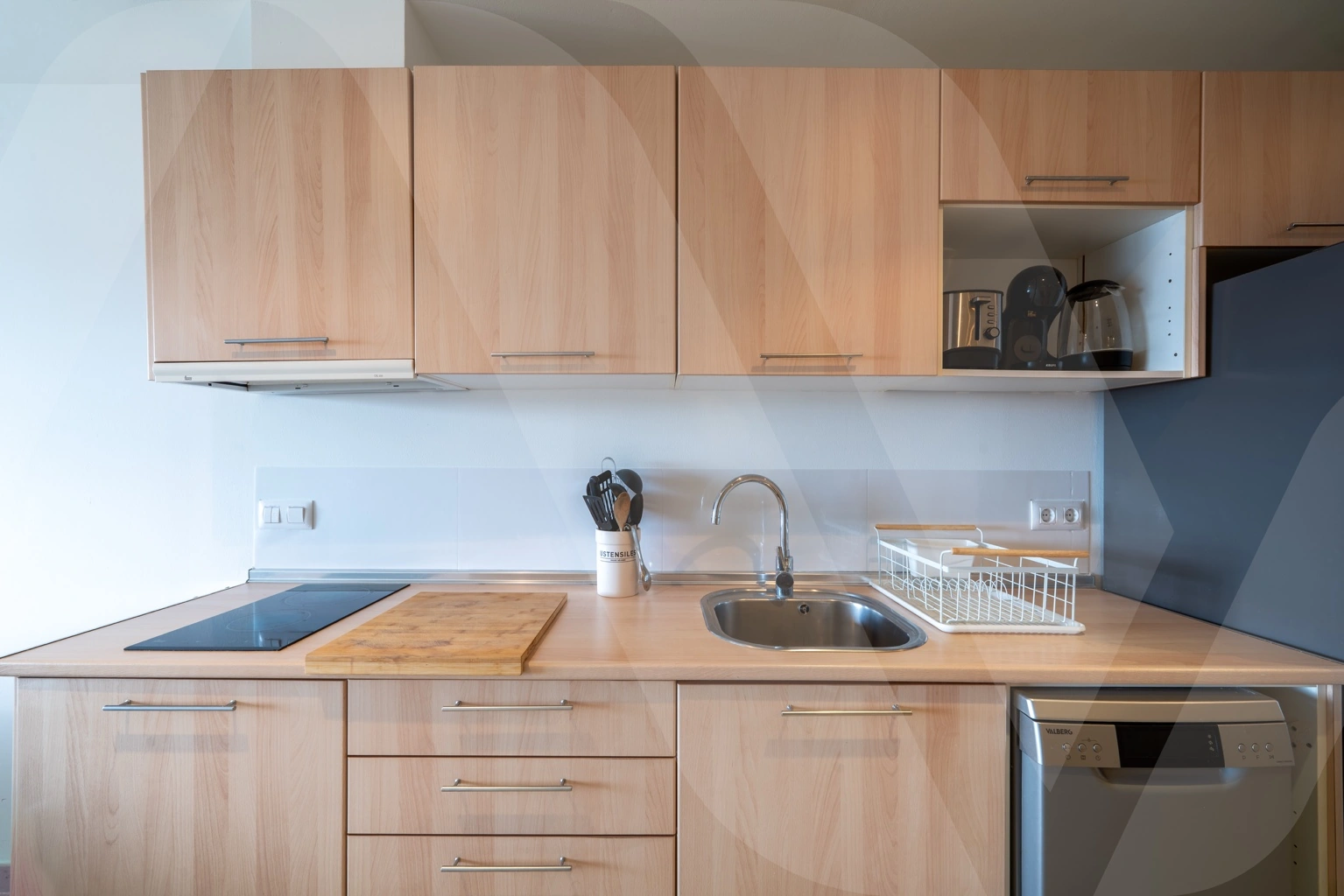 – Cuisine : Entièrement équipée avec plaques de cuisson, four, micro-ondes, réfrigérateur, congélateur, cafetière, bouilloire électrique, vaisselle complète