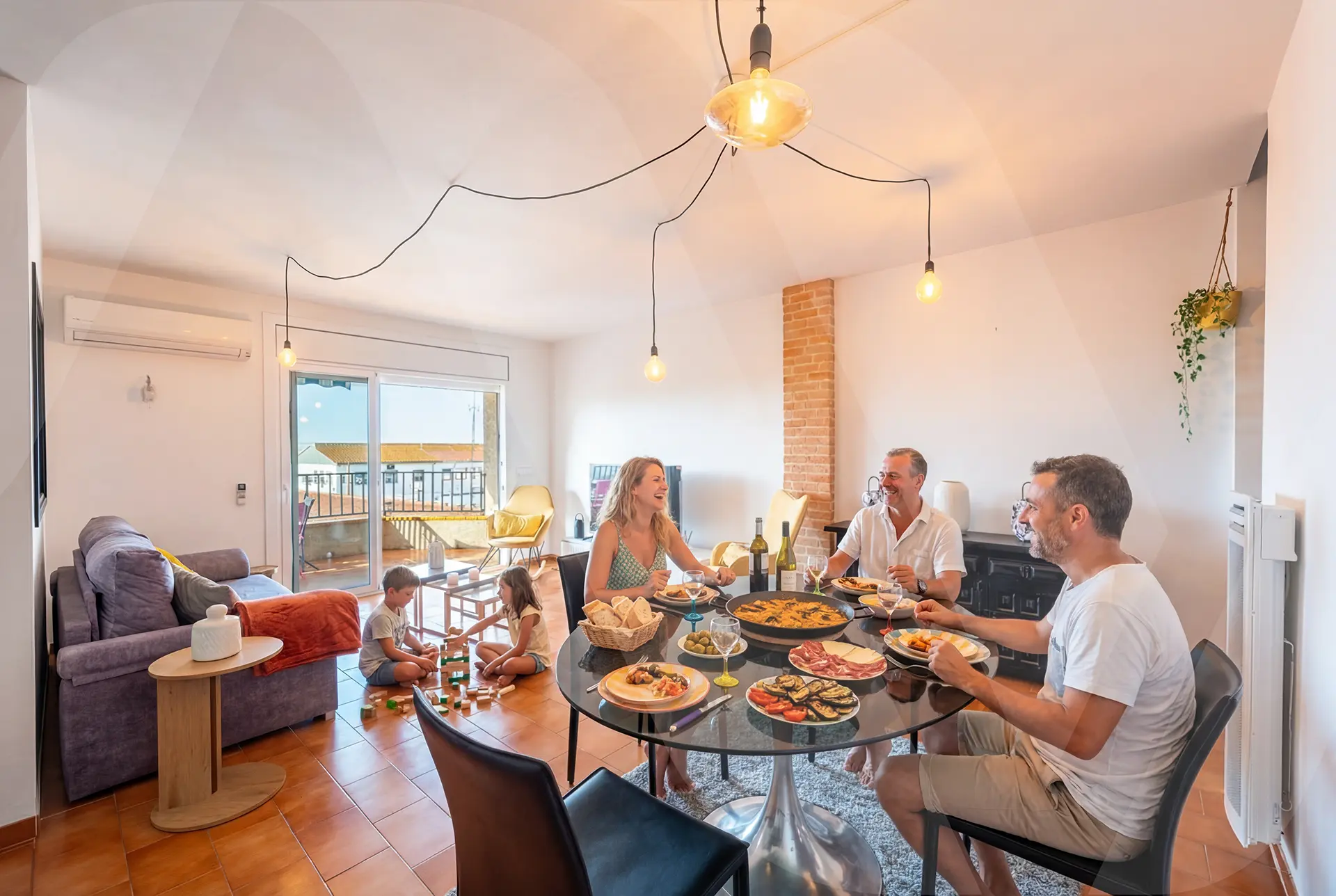 – Salon : Grand espace avec table à manger
